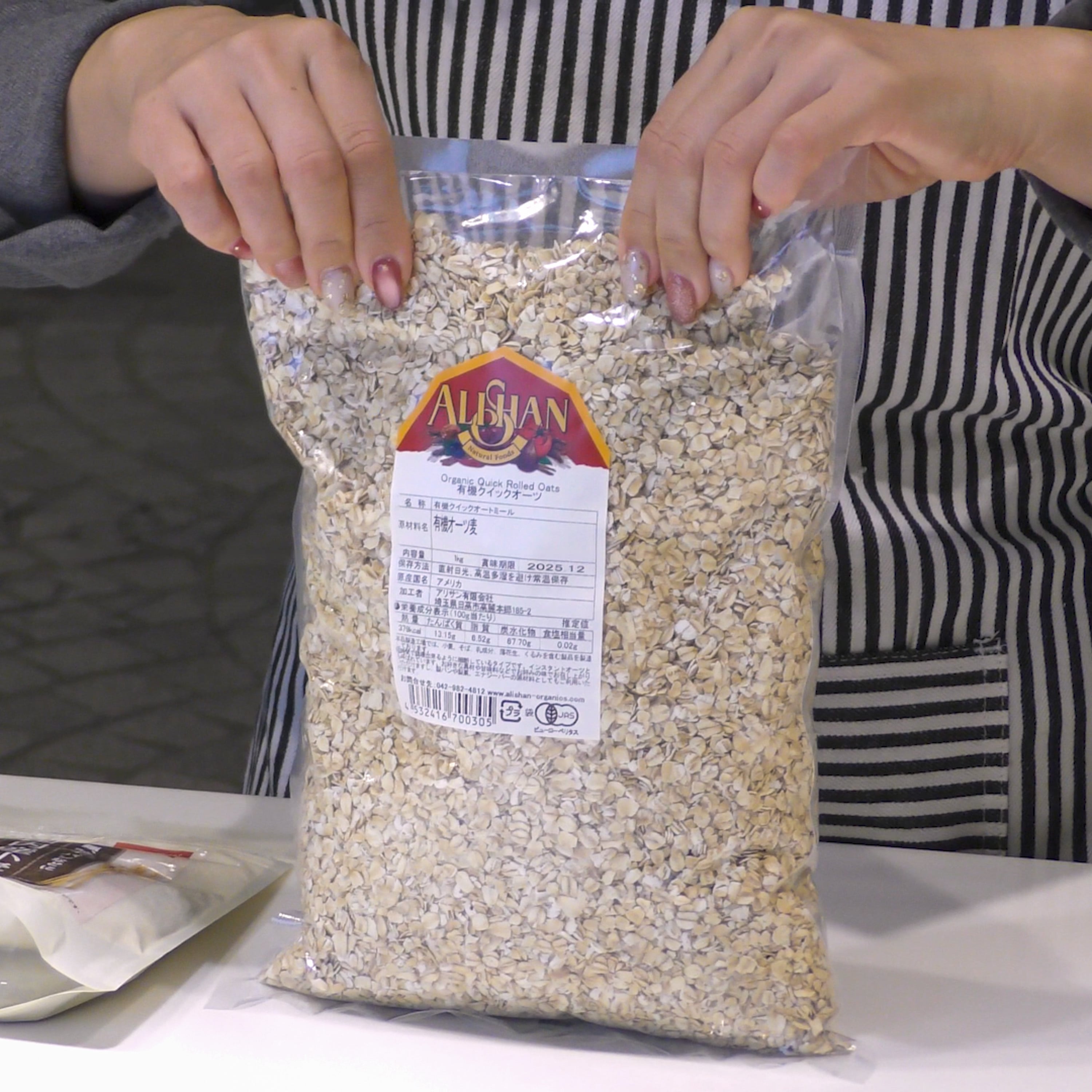 このYouTube動画で紹介している、美容と健康を叶えるオーガニック・ヘルシークッキーをひと口かじった瞬間の、サクッ、ぱりっという軽やかな食感を叶えるために、細かく加工されたインスタントタイプ、クイックオールをセレクトしています。
